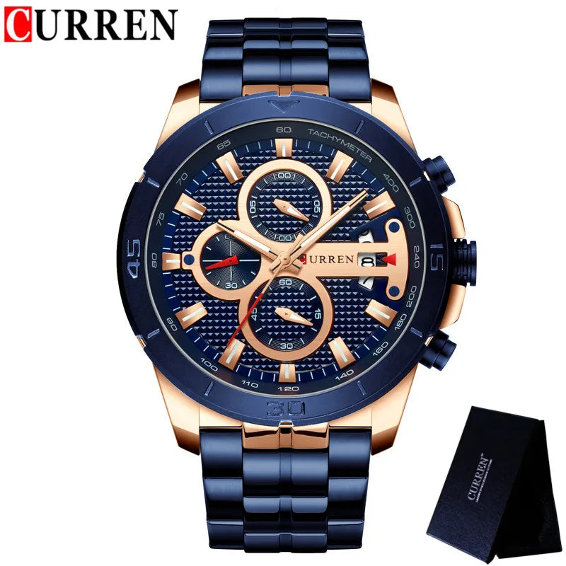 This timepiece features a bold yet refined dial with fully functional chronograph subdials and luminous markers for clear readability. The stainless steel bracelet adds durability and a clean, modern finish, making it suitable for both professional and casual settings.